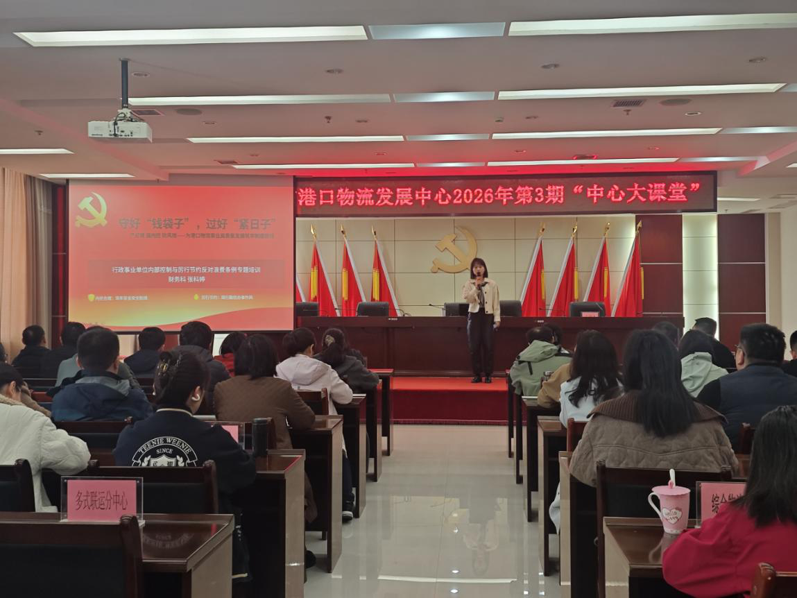 为深入贯彻习近平总书记关于党政机关带头过紧日子的重要指示精神,全面落实中央、省市关于加强严控行政运行成本、厉行节约反对浪费的工作要求,进一步规范资金管理、扎紧制度笼子、筑牢廉政防线,3月25日,市港口物流发展中心举办2026 年第3期 “中心大课堂”,专题开展《财务内部控制与厉行节约反对浪费》培训。中心班子成员及全体干部职工参加。
