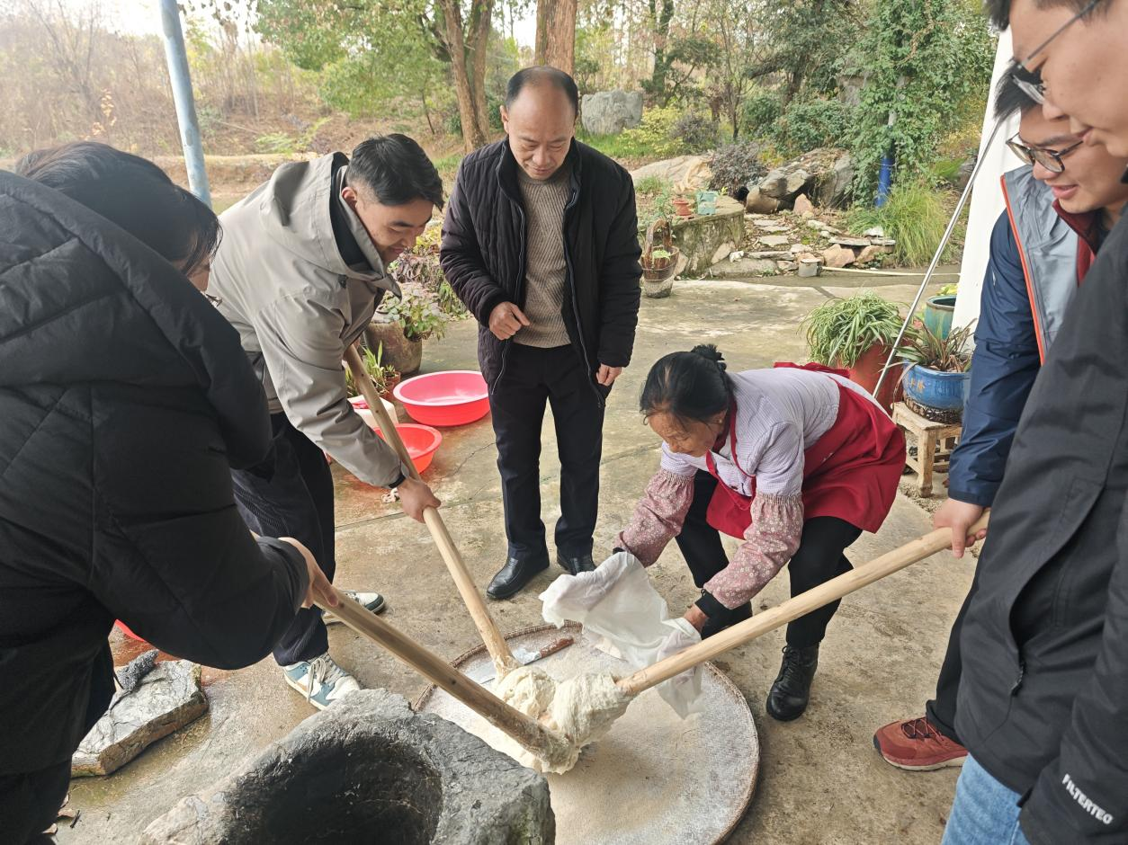 团支部则组织年轻干部开展了“青年活力,糍粑飘香”传统文化体验活动。大家踊跃参与,亲手抡槌打糍粑,在劳动协作中感受传统技艺的魅力。餐后,全体人员齐声高唱《我和我的祖国》等红色经典歌曲。激昂嘹亮的歌声久久回荡,抒发了对党和祖国的无限热爱,也展现出青年干部朝气蓬勃、团结奋进的青春风采。