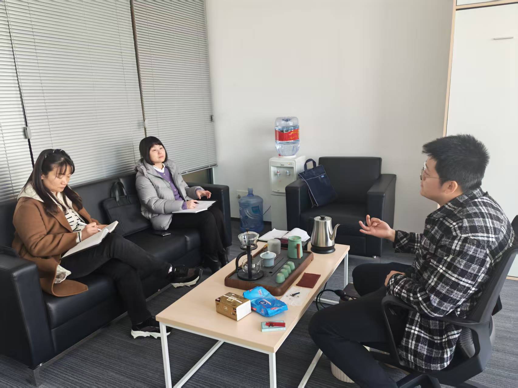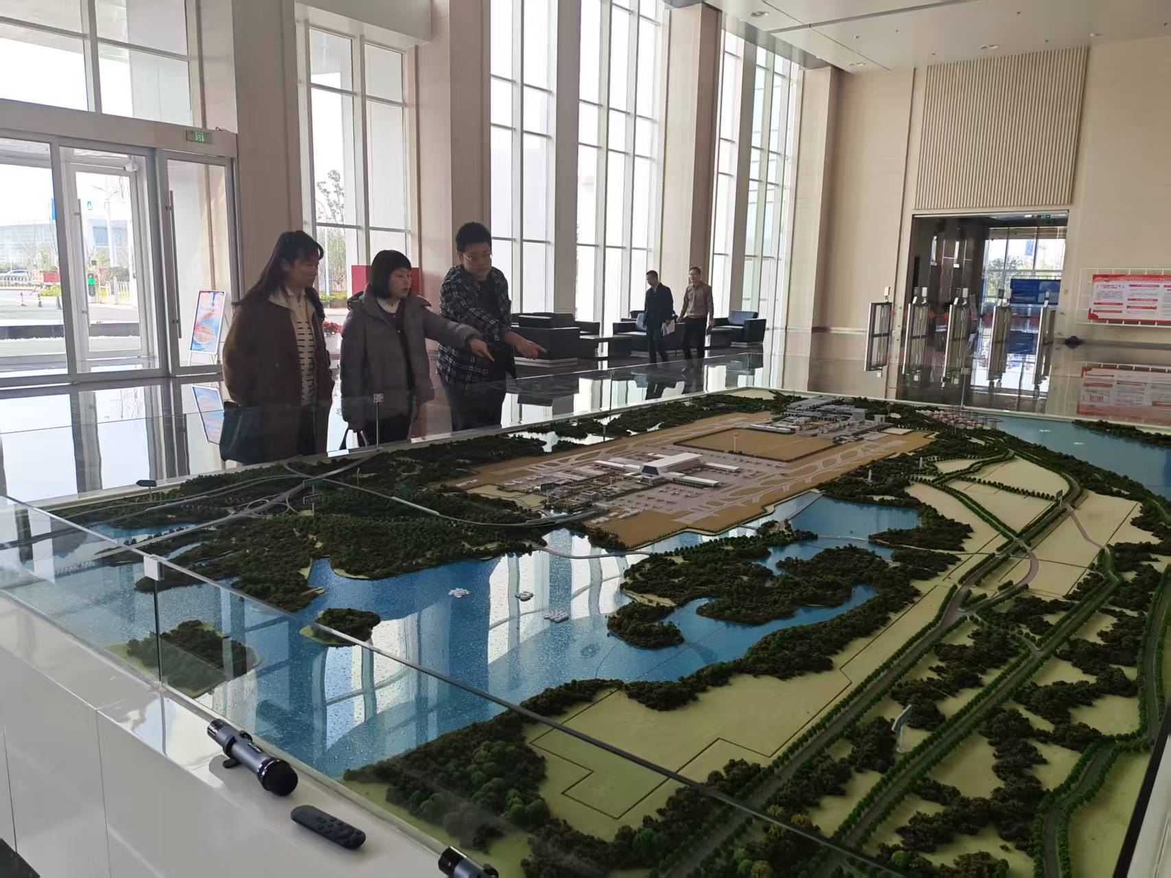 调研组一行在顺丰集团湖北枢纽指挥部高级经理刘坤陪同下,先后实地参观机场模拟沙盘、国际货站及转运中心展厅。参观期间,刘坤围绕机场整体运营现状、在黄业务布局规划及航空货源组织模式等内容作了详细介绍。实地参观结束后,双方围绕“公空”“公水”联运模式创新探索、航空集货业务提质扩面、顺丰集团供应链优势资源导入等重点工作,开展了深入座谈交流。